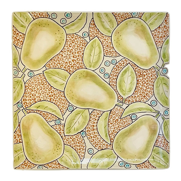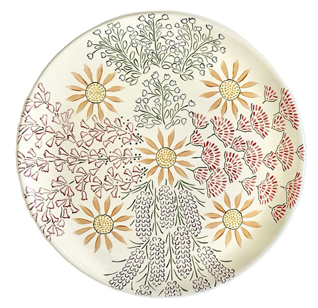 Katherine paints her designs onto platters and then they are glazed and fired.
